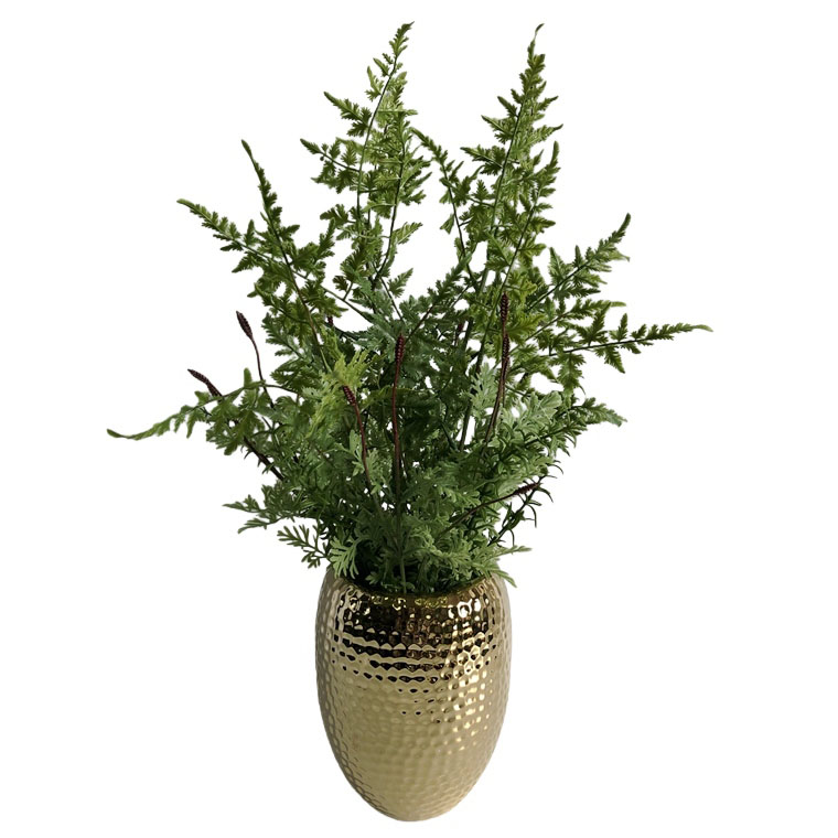 ARTIFICIAL FROND IN ELECTROPLATE CERAMIC POT (P5236-58)