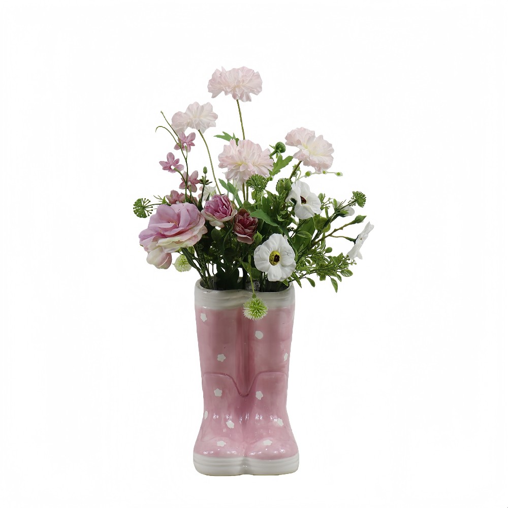 ARTIFICIAL MIXED FLOWER IN CERAMIC BOOT (P250741-49)