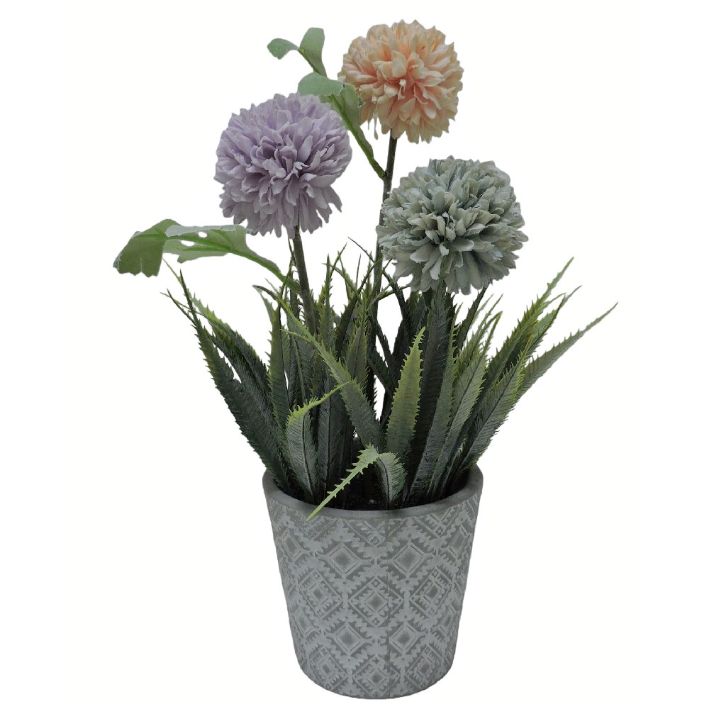 ARTIFICIAL CHRYSANTHEMUM IN CEMENT POT (P210077-33)