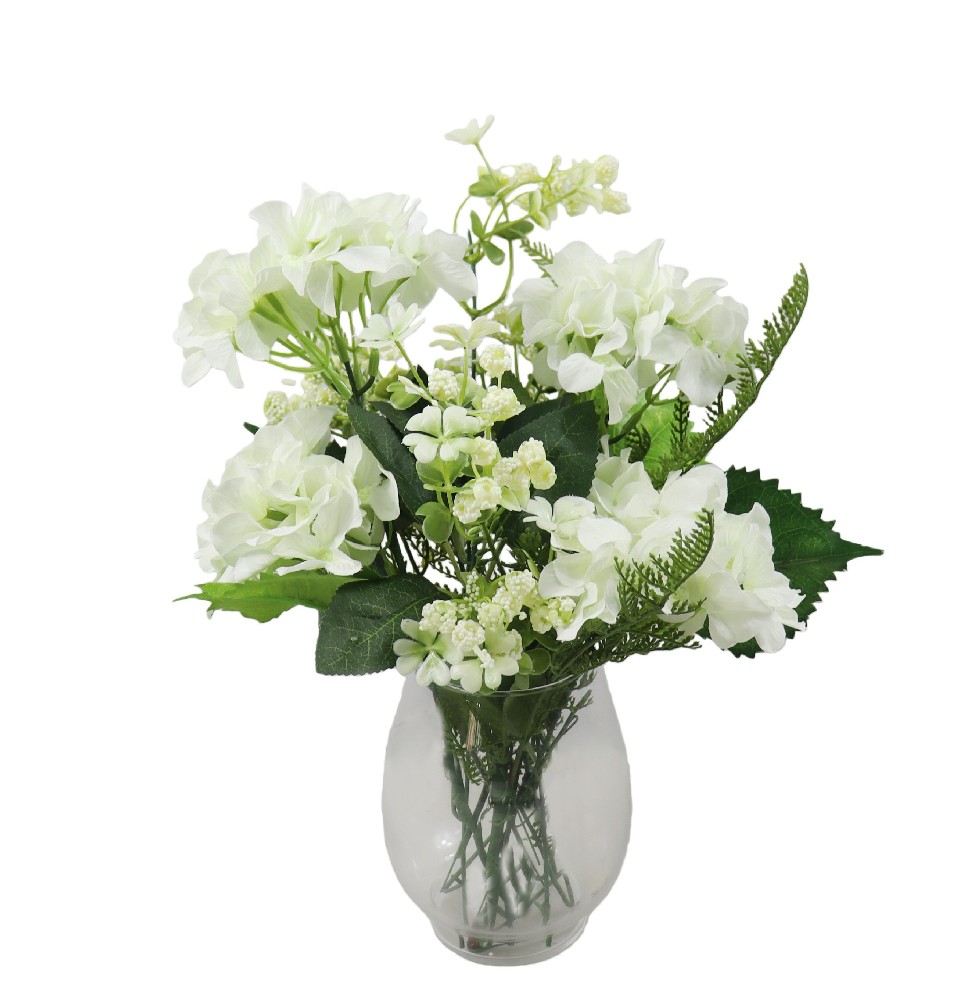 ARTIFICIAL HYDRANGEA W/FAUX WATER IN GLASS VASE (P250631-35)