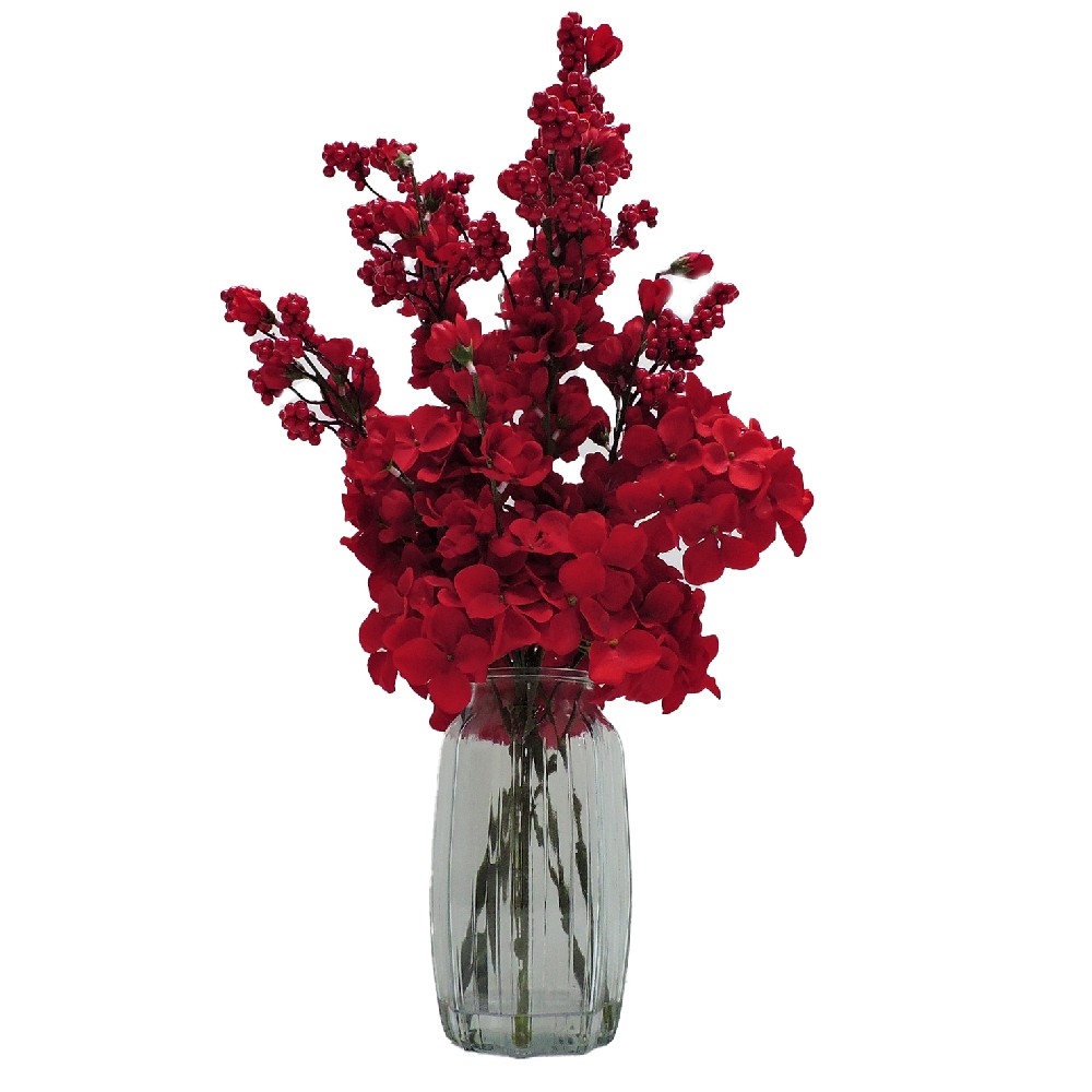 ARTIFICIAL HYDRANGEA W/FAUX WATER IN GLASS VASE (P250026HB-28)