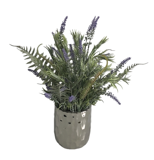 ARTIFICIAL LAVENDER IN ELECTROPLATE CERAMIC POT (P5260-45)