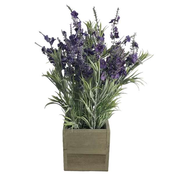ARTIFICIAL LAVENDER IN WOODEN POT (P5251-35)
