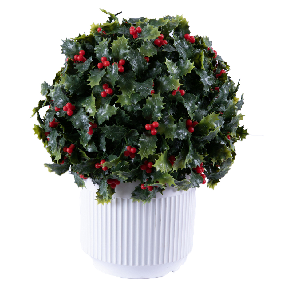 Ø30CM christmas leaves ball with plastic pot - 33CM