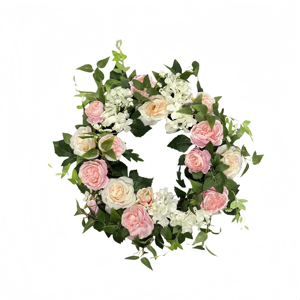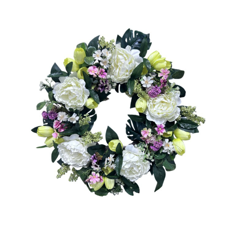 ARTIFICIAL MIXED PEONY FLOWER WREATH (W250140MZ)
