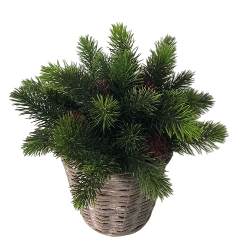 ARTIFICIAL PINE GRASS IN RATTAN BASKET (P7591R-25)