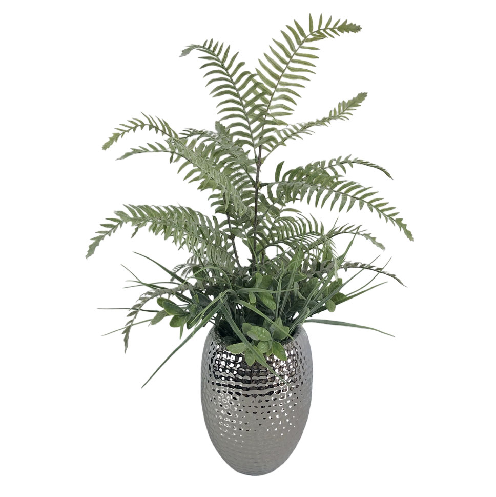 ARTIFICIAL FROND IN ELECTROPLATE CERAMIC POT (P5236-58)