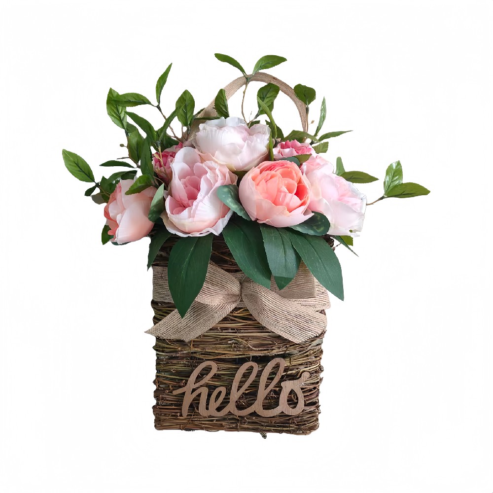 ARTIFICIAL MIXED PEONY FLOWER IN RATTAN BASKET (P251185WM)