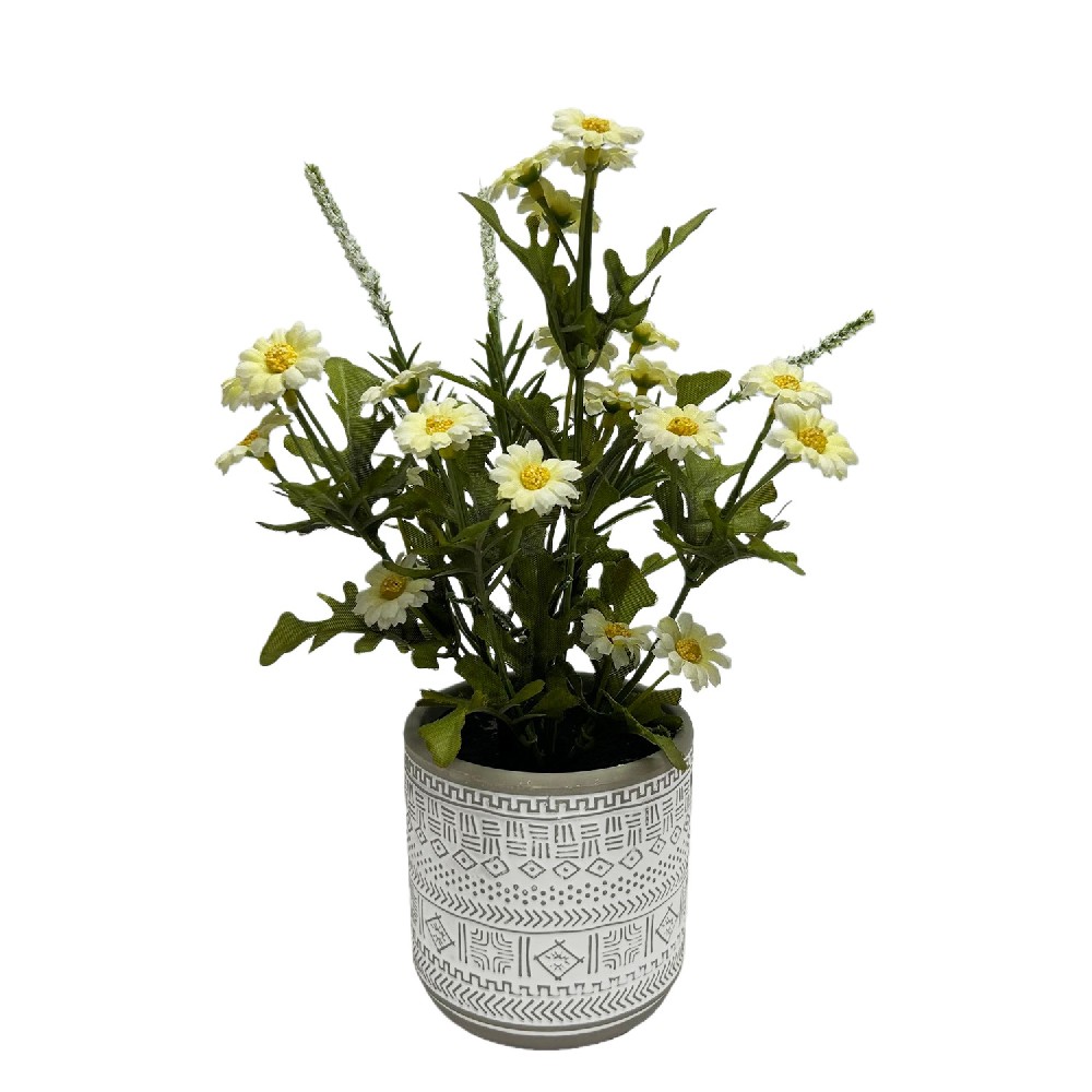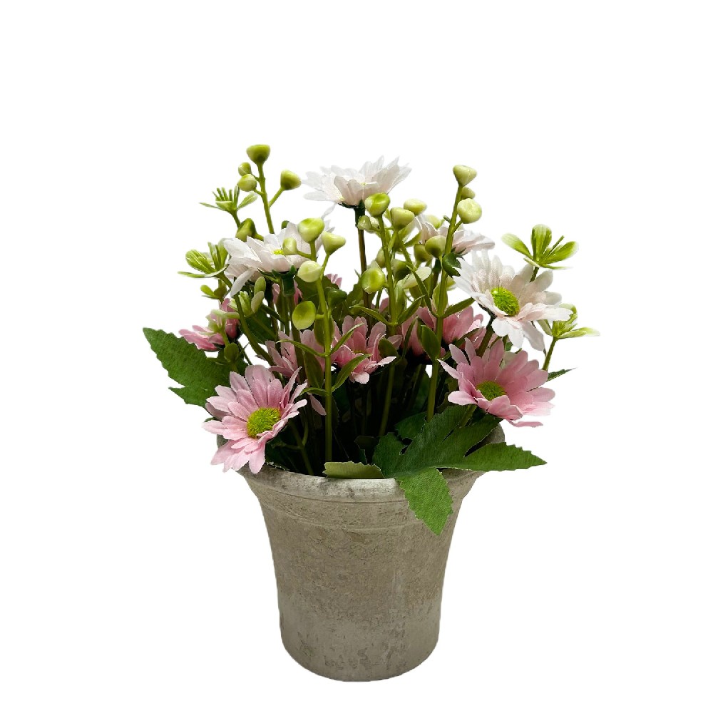 ARTIFICIAL DAISY IN CEMENT POT (P220564-21)