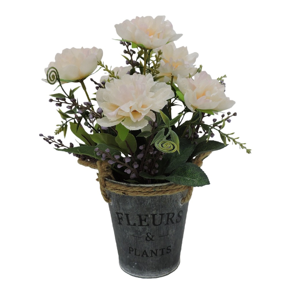 ARTIFICIAL PEONY IN IRON POT (P200451-27)