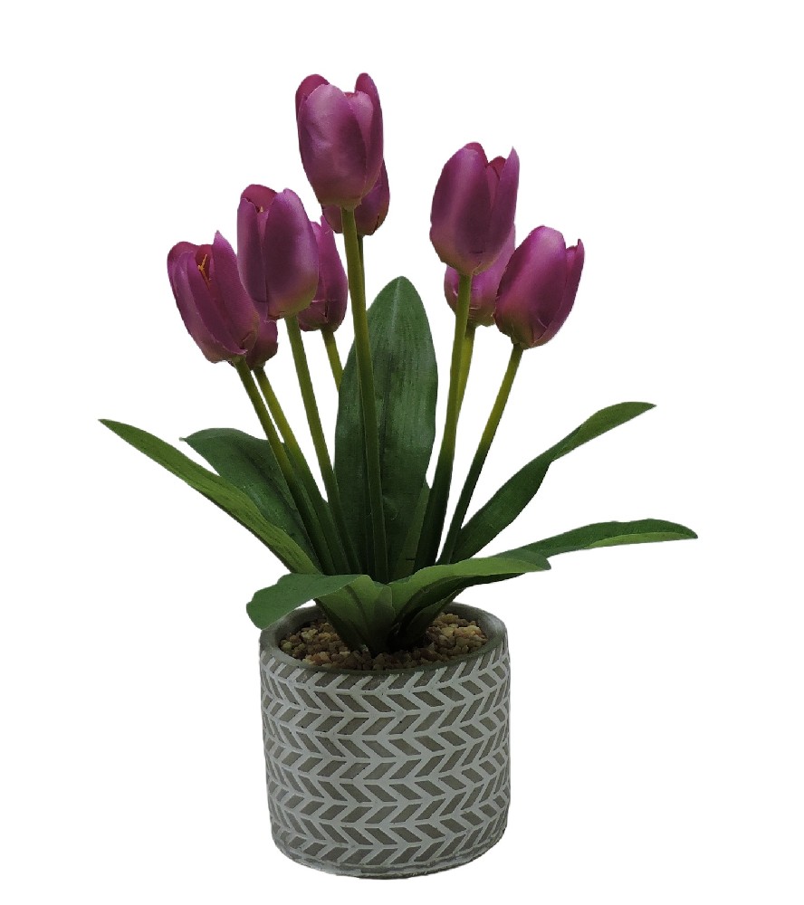 ARTIFICIAL TULIP IN CEMENT POT (P210366-43)