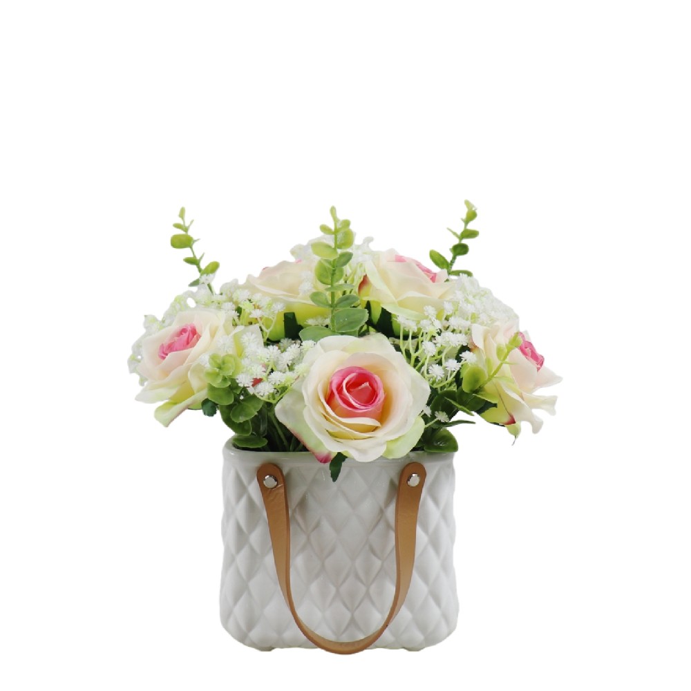 ARTIFICIAL MIXED ROSE IN CERAMIC POT (P250091HB-28)