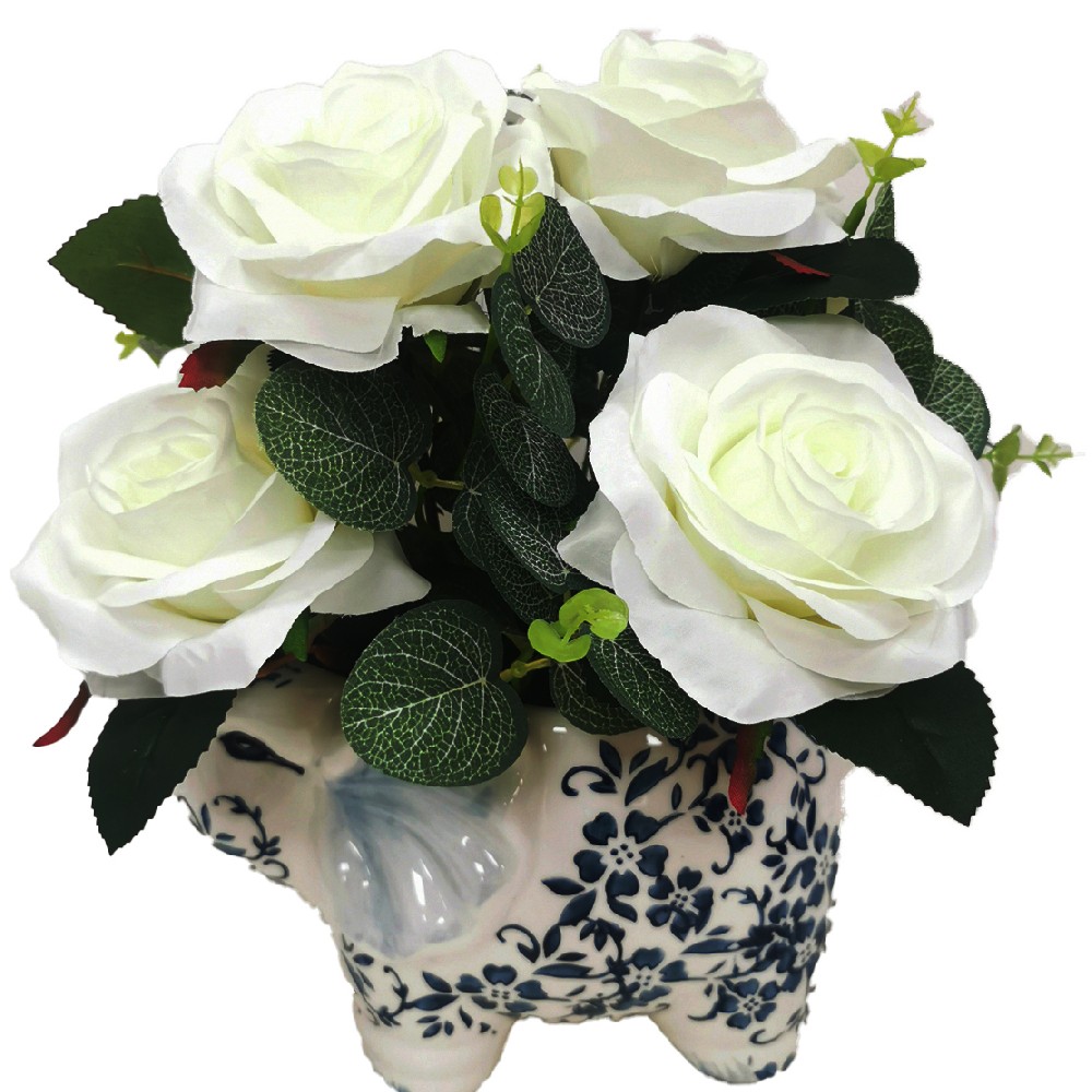 ARTIFICIAL ALICE ROSE IN CERAMIC POT (P250016HB-23)