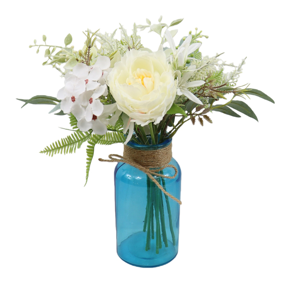 ARTIFICIAL MIXED PEONY W/FAUX WATER IN GLASS VASE (P250637-33)