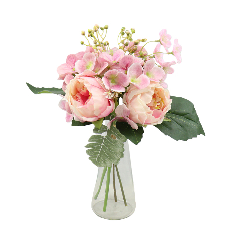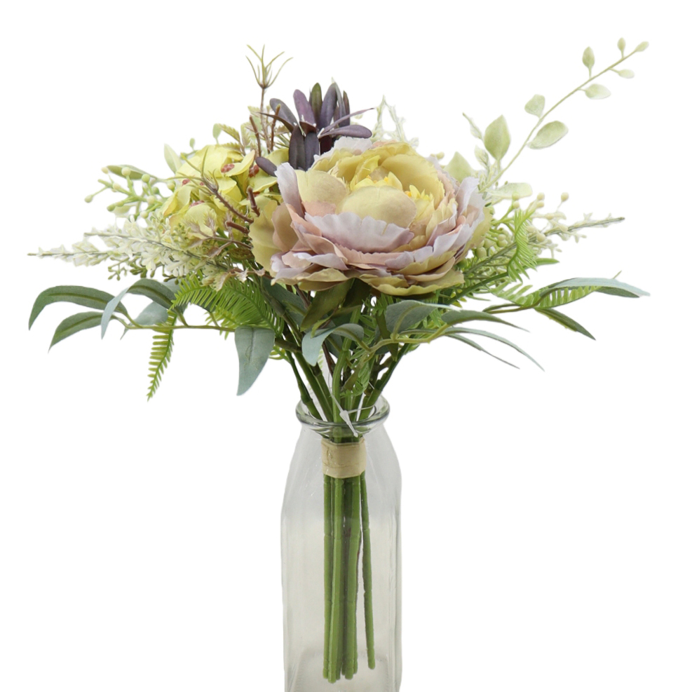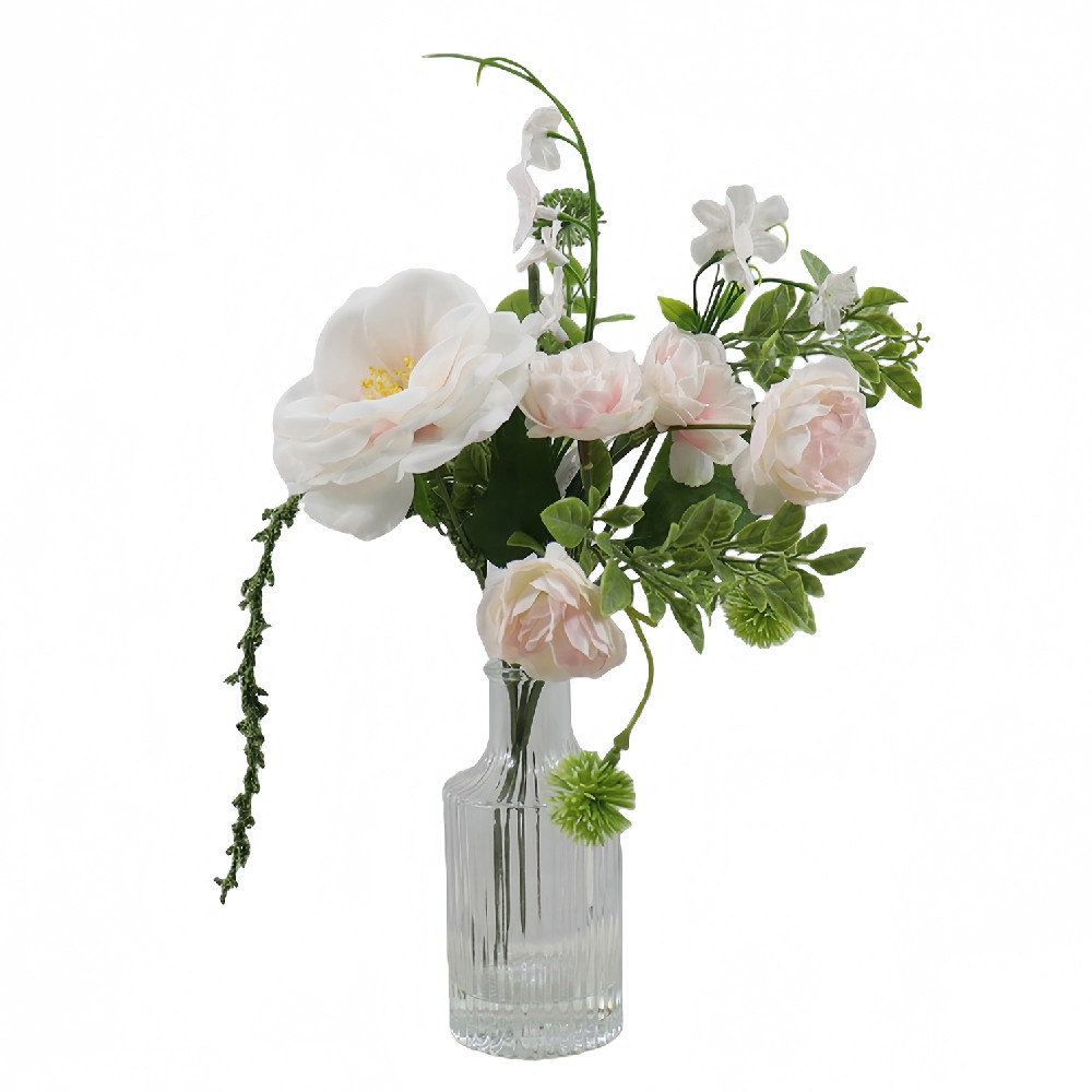 ARTIFICIAL MIXED PEONY W/FAUX WATER IN GLASS VASE (PP250633-28)