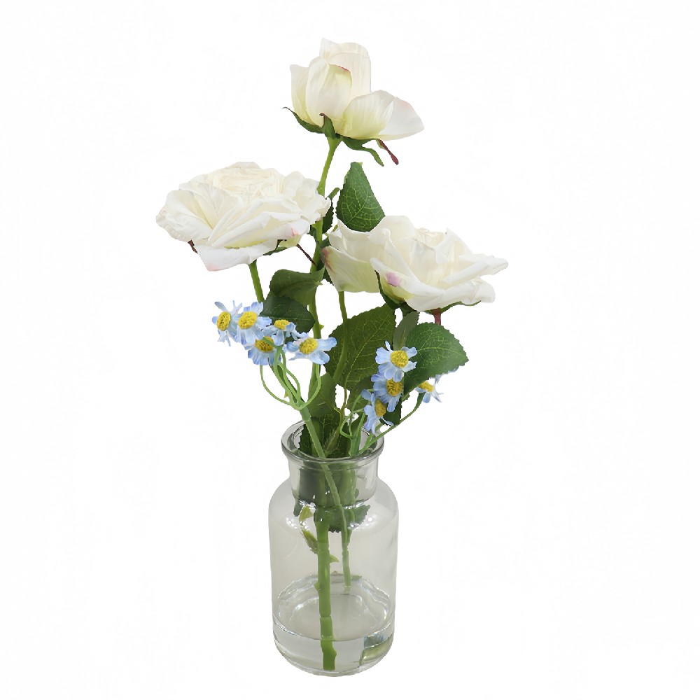ARTIFICIAL MIXED ROSE W/FAUX WATER IN GLASS VASE (P250632-32)