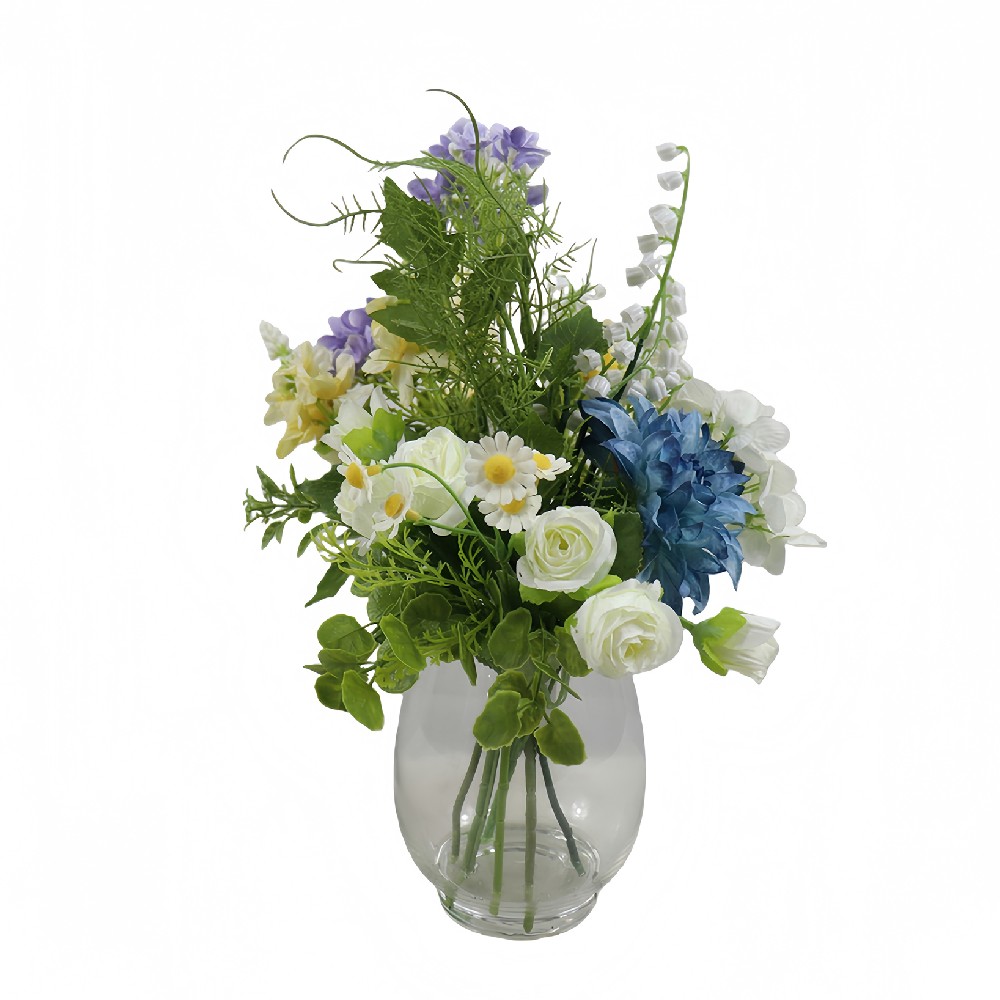 ARTIFICIAL MIXED FLOWER W/FAUX WATER IN GLASS VASE (P250692-33)
