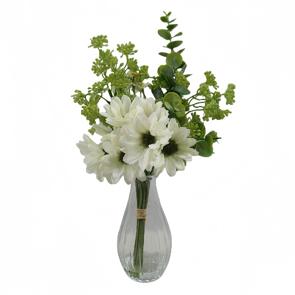 ARTIFICIAL DAISY W/FAUX WATER IN GLASS VASE (P250697-33)