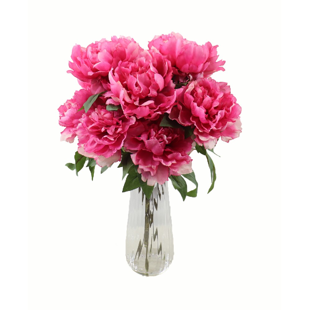 ARTIFICIAL MIXED PEONY W/FAUX WATER IN GLASS VASE (P5179-28)