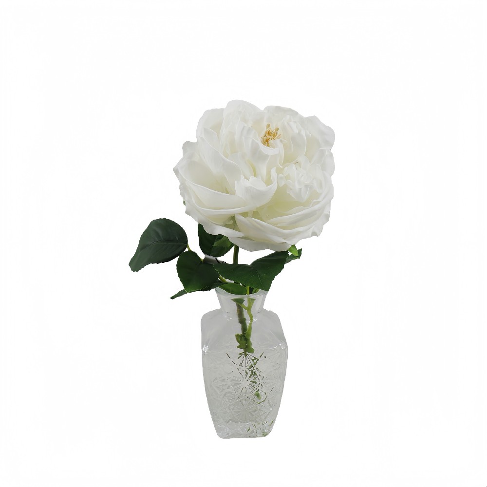 ARTIFICIAL PEONY W/FAUX WATER IN GLASS VASE