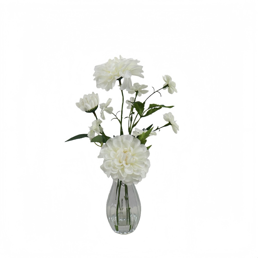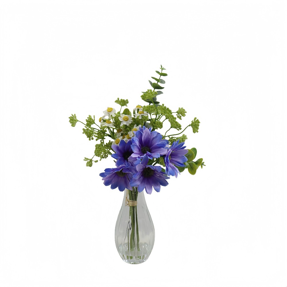 ARTIFICIAL DAISY W/FAUX WATER IN GLASS VASE (p250024hb-24)