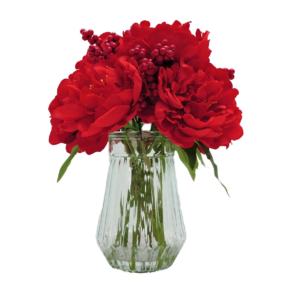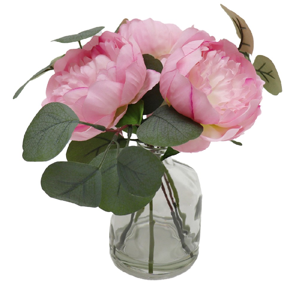 ARTIFICIAL PEONY W/FAUX WATER IN GLASS VASE (P250129HB-29)