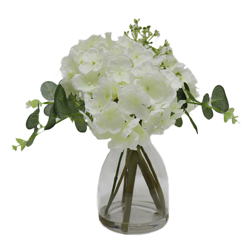 ARTIFICIAL HYDRANGEA W/FAUX WATER IN GLASS VASE (P250026HB-28)