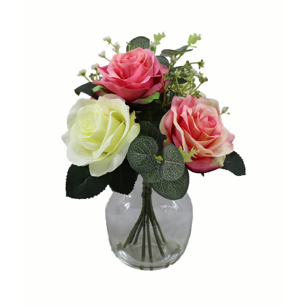 ARTIFICIAL MIXED FLOWER W/FAUX WATER IN GLASS VASE (P250022HB-59)