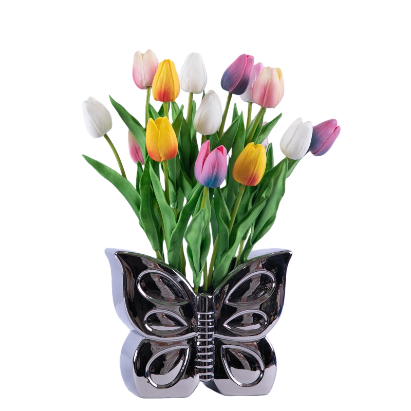 ARTIFICIAL TULIP IN ELECTROPLATE CERAMIC POT (P240710)